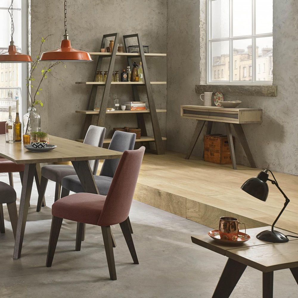 Item Code: 6040-27 Boasting a fresh new look and dynamic perspective, the Cadell dining range creates a contemporary aesthetic through well-considered design. Organic lines are at the heart of this crafted work: split panel tops with wavy edges in a refined aged oak finish that beautifully contrasts with the weathered ash detailing featured in the finely tapered legs. This detailing also seamlessly follows through in the cut silhouette of the cabinets. Options on the upholstered chairs in warm stone washed colours of smoke grey, slate blue and mulberry as well as a rich distressed brown leather marry beautifully with the aged and weathered oak colours. Cadell offers a cutting edge look to transform any modern home.