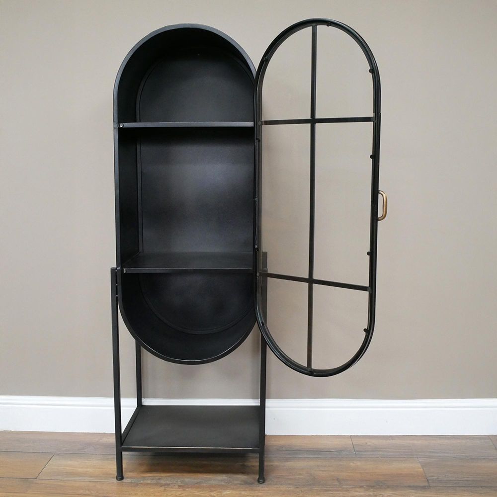 Display Cabinet - Industrial - Black Metal and Glass - Arched - 1 Door