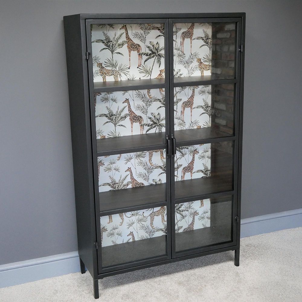 Display Cabinet - Black Metal and Glass - 2 Door
