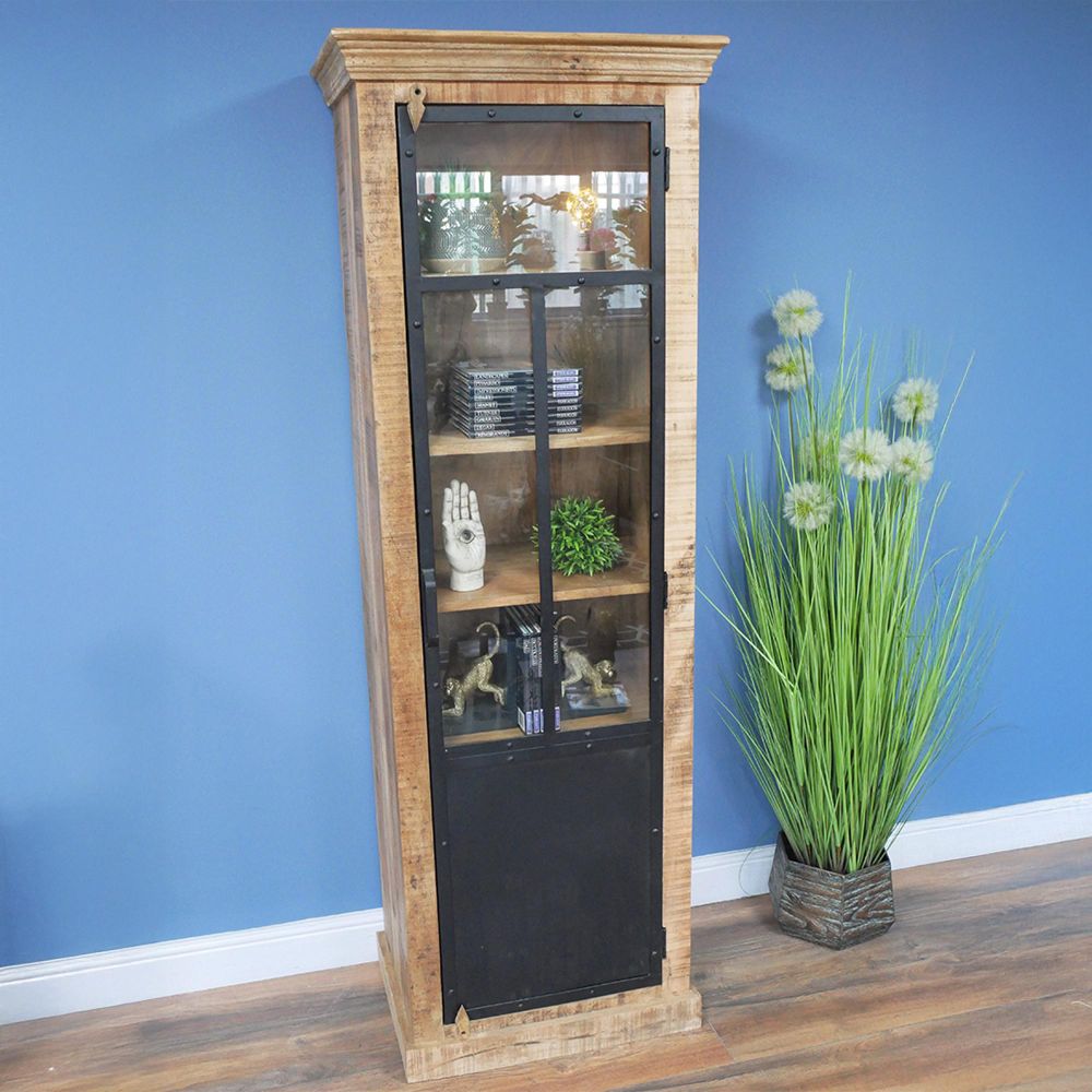 Tall Cabinet - Rustic Mango Wood and Glass - 1 Door