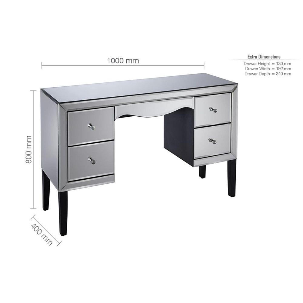 Item Code: PAL4DTMIR Bring a touch of glamour to any home with the Palermo range from Birlea. This classically designed 4 Drawer Dressing Table is constructed from a MDF frame and features a mirrored finish with bevelled edges and elegant mock crystal handles. Cleaning and Care : Wipe with dry cloth.tool sold separately.