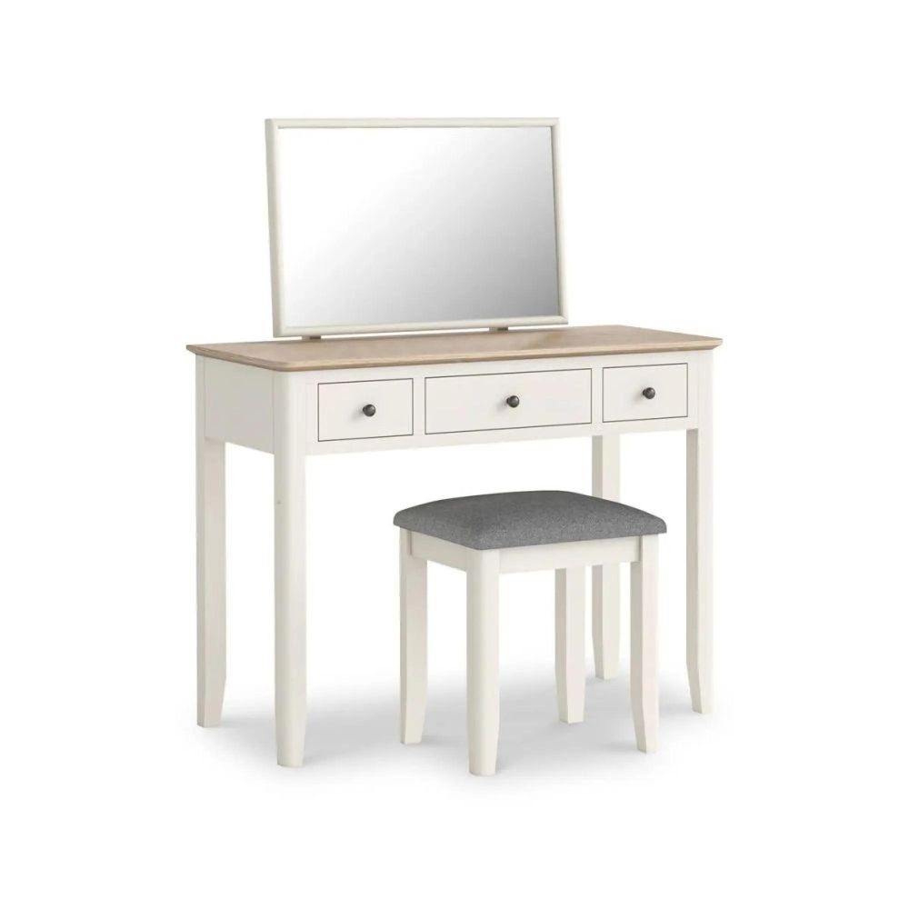Comes complete with a framed mirror and a padded stool