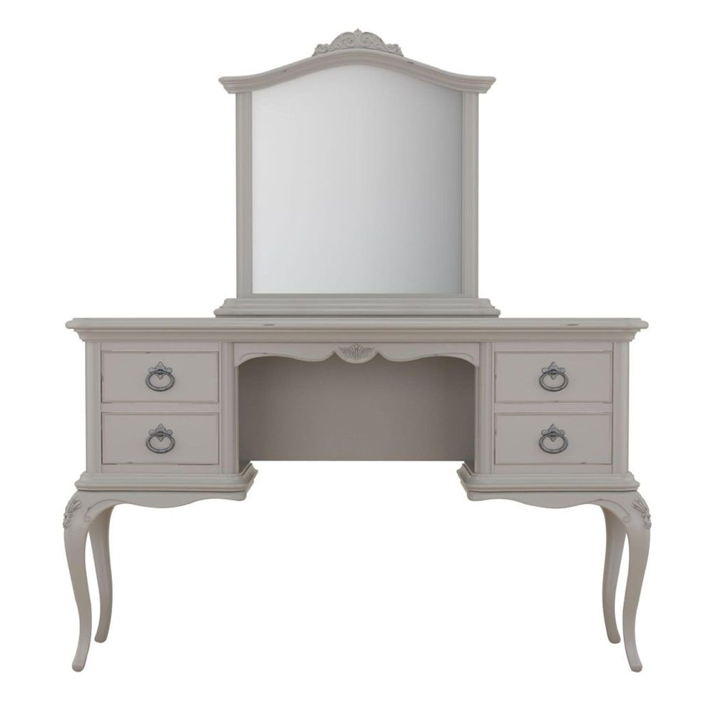 Expertly crafted from solid poplar with birch veneers, this dressing table is built for lasting durability. The soft grey painted finish with lightly distressed edges gives it a gentle, aged appeal, while the carved detailing, cabriole legs, and curved apron highlight its traditional French character. The antique pewter handles add the perfect finishing touch to its graceful silhouette.