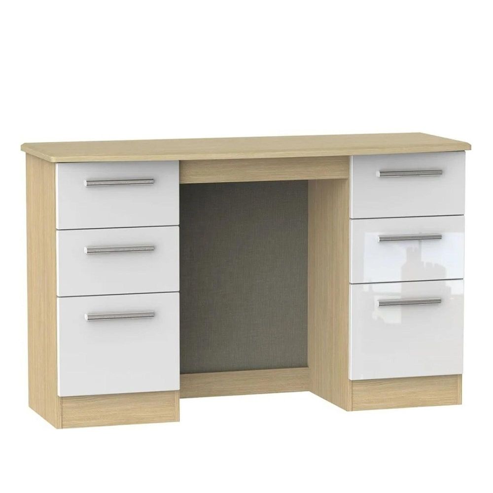 Knightsbridge White Gloss and Light Oak 6 Drawer Double Dressing Table
