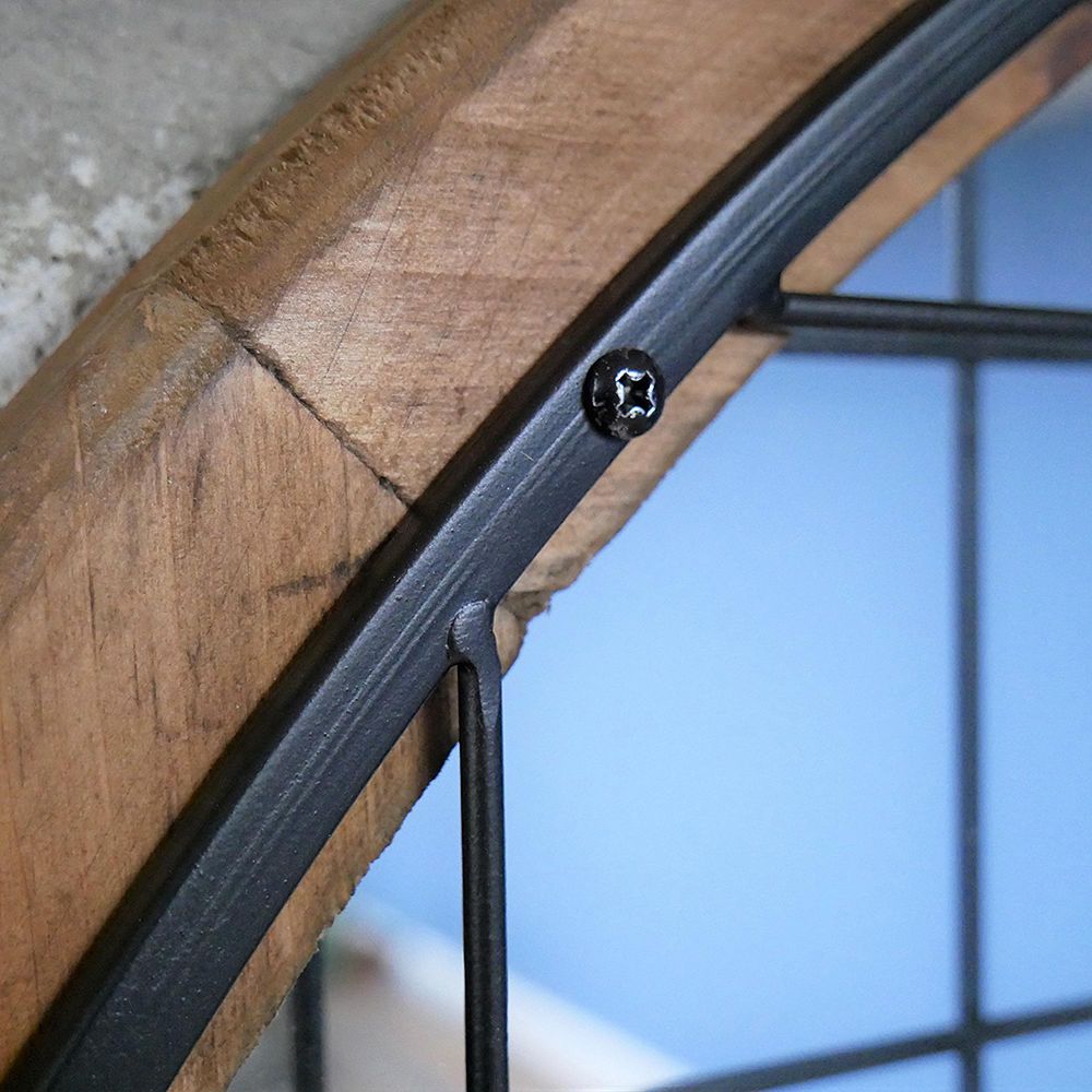 Wall Mirror - Round - Fir Wood and Metal Grid