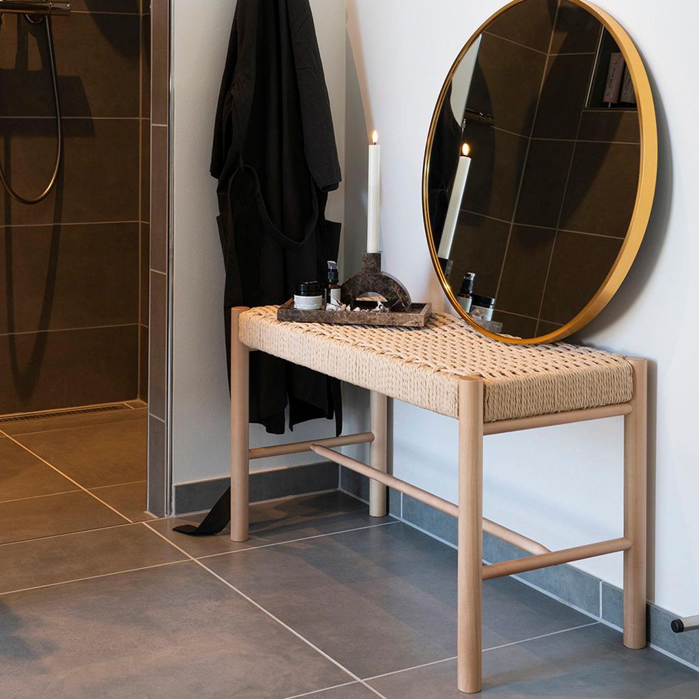Designed with a solid beech wood frame and a woven natural paper cord seat, the bench pairs durability with visual softness. Its neutral colour palette makes it easy to place in an entryway, bedroom, or living space, while the comfortable seating surface allows it to double as an accent stool or stylish ottoman. Whether used every day or brought out for special occasions, the Abano feels effortlessly functional yet beautifully crafted.