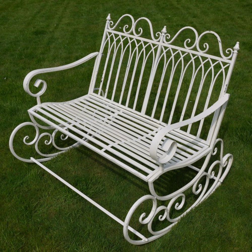 Garden Bench - Antique Cream Metal - Rocking