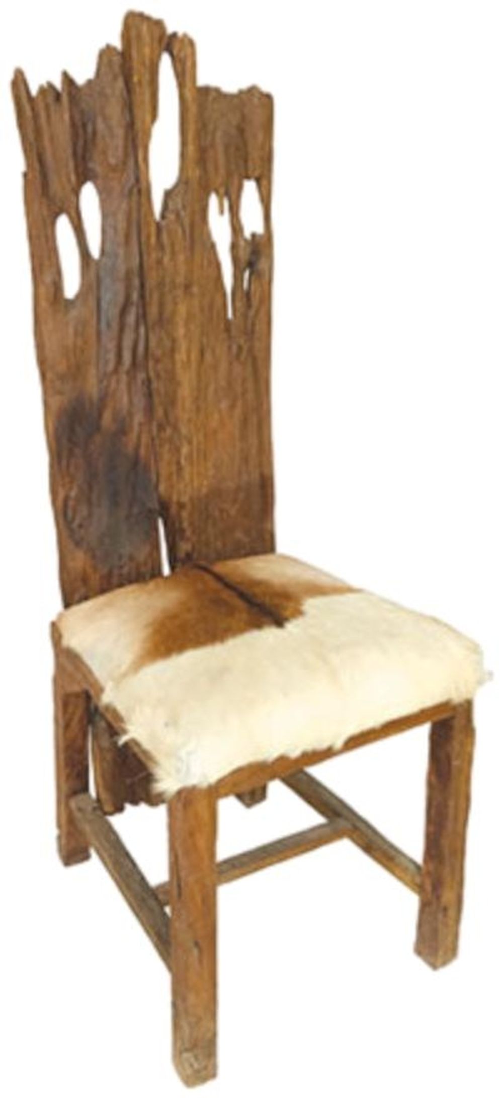 This comfortable and unusual dining chair is hand carved from teak root and upholstered with goat skin for a luxurious feel.(One chair only)This product is hand crafted from teak tree roots so each one is unique in appearance and may differ from the image shown. All sizes and weights are approximate due to the unique nature of our products.