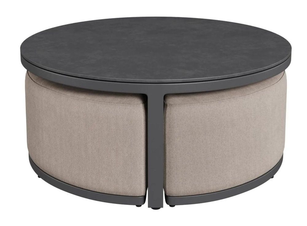 Garden Coffee Table - Round - Aluminium - Oatmeal - with Footstools