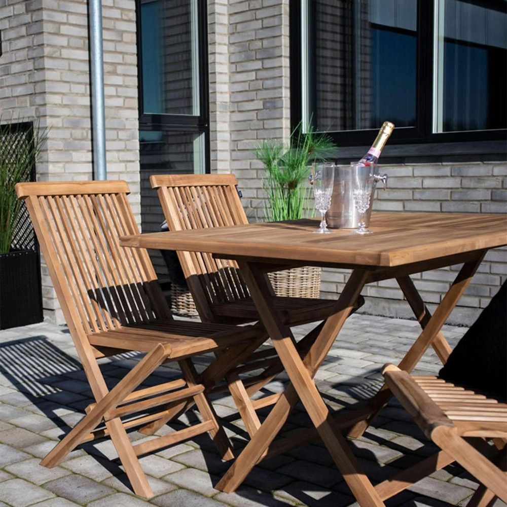 Designed with a nod to classic and Scandinavian simplicity, the Oviedo table suits both modern terraces and traditional gardens. Its natural teak grain adds depth and authenticity, while its weather-resistant properties allow it to withstand sun, moisture, and changing seasons with minimal care.