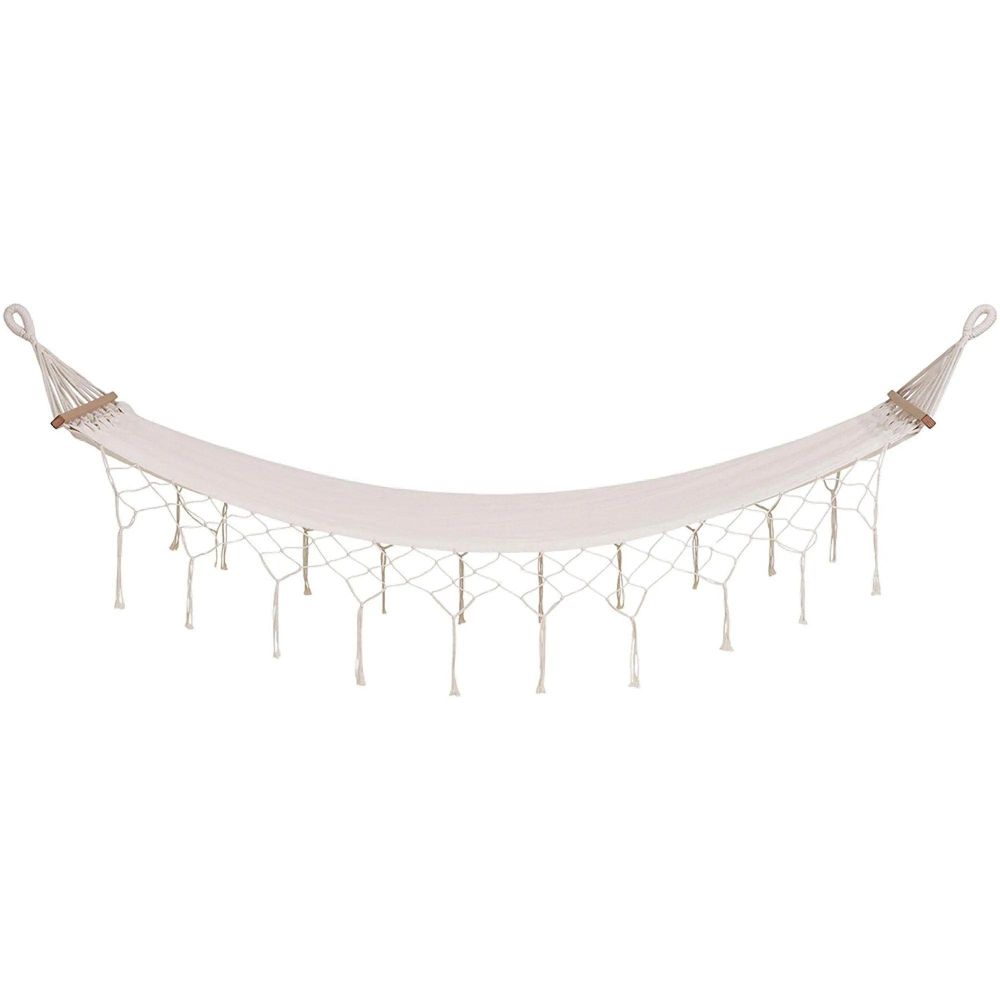 Unwind in effortless style with the Edessa Off White Fabric Garden Hammock—a refined balance of natural beauty, craftsmanship, and comfort that transforms any outdoor space into a private retreat.