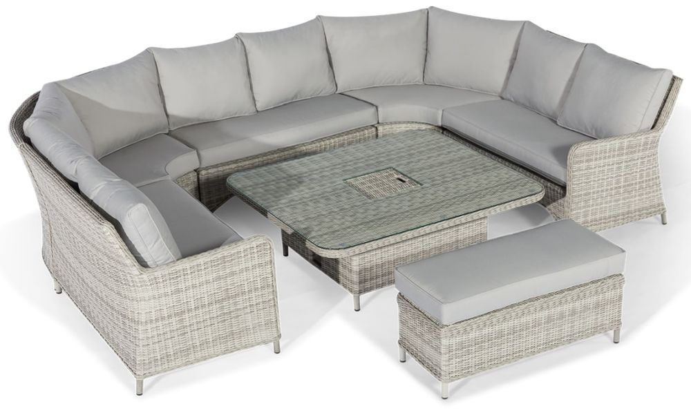 Item Code: OXF-208542 The Oxford Royal U Shaped Sofa Set has been designed to cater for those larger families. The horse shoe curve helps with seating and space for those who like to entertain or enjoy big family events. The corner set comes with a stylish rising table which has an integrated ice bucket.Set Includes