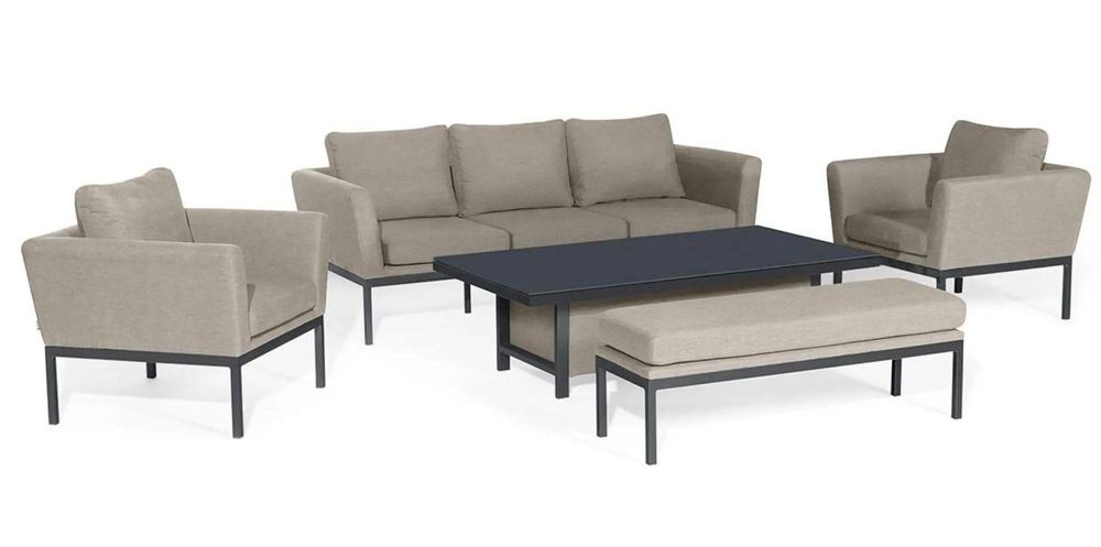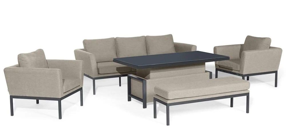 The Outdoor Fabric Pulse 3 Seat Sofa with Rising Table in charcoal grey offers ultimate flexibility with the inclusion of the height adjustable, rising table - allowing you to easily change between a dining table and coffee table in a matter of seconds.