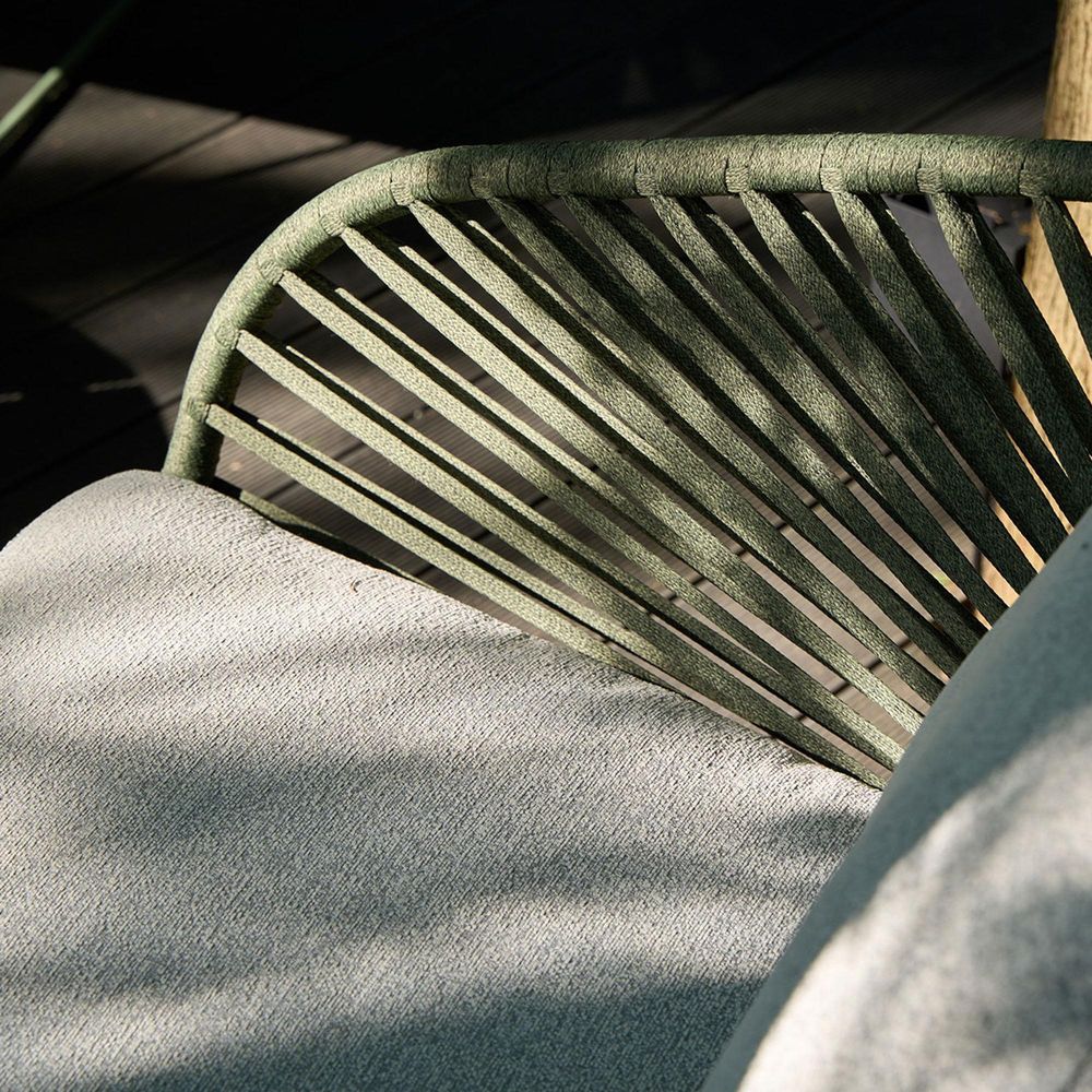 Other outdoor pieces in the collection are available in various natural wood and green finishes, allowing buyers to create a coordinated garden look across different seating zones.