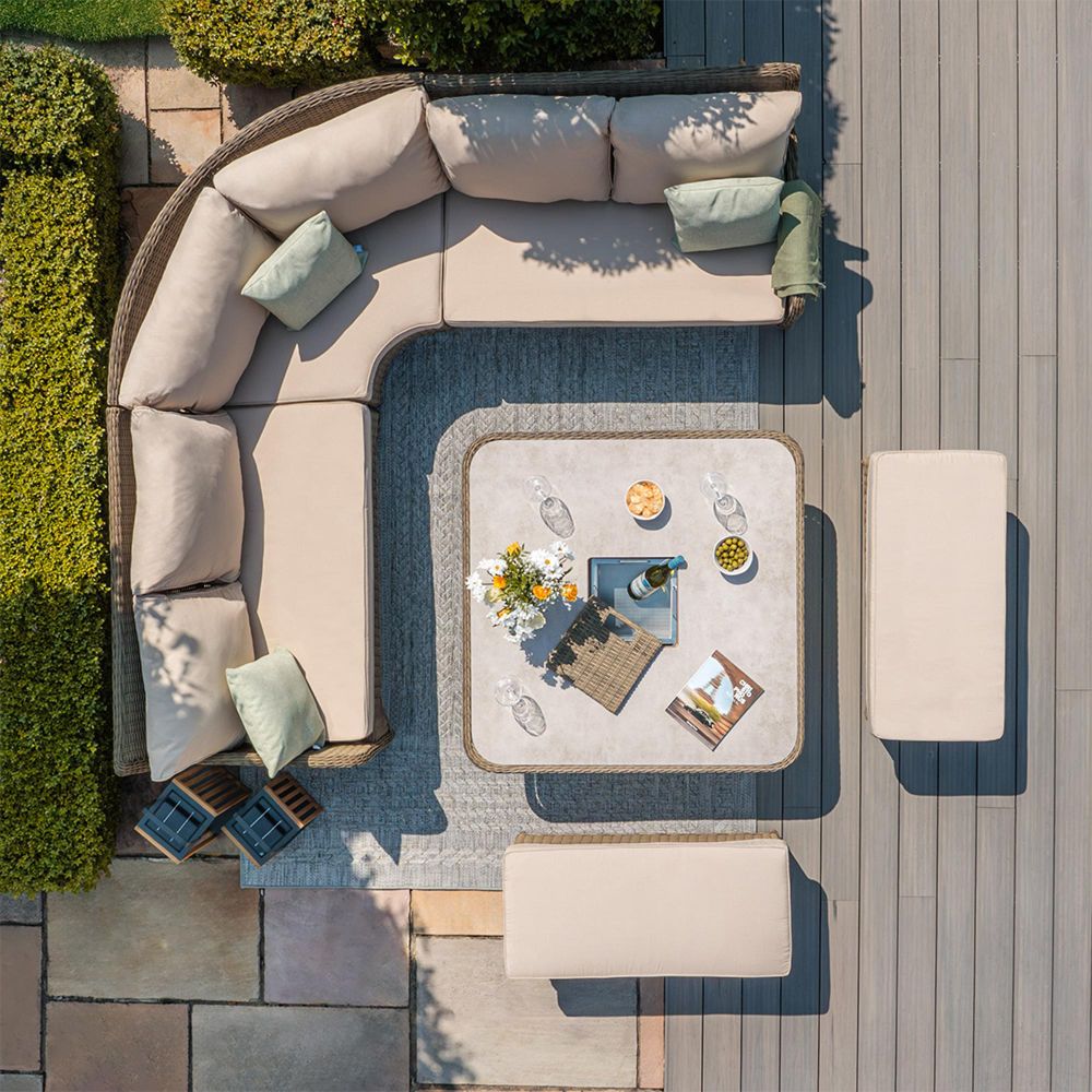The Maze Winchester Royal Corner Rattan Dining Set with Rising Table and Ceramic Glass is an exquisitely crafted outdoor furniture collection that harmoniously combines contemporary versatility with timeless elegance. Built upon the foundation of our most sought-after and best-selling collections, this redesigned set incorporates all the beloved features of the Winchester line, enhanced with intelligent improvements for superior comfort, practicality, and outdoor charm. Meticulously constructed from high-quality polyethylene (PE) rattan in a classic rounded weave, this opulent set is designed to optimise your garden area with its innovative corner layout. The deep-seated, low-profile corner sofa provides outstanding comfort, further enhanced by thick, shower-resistant cushions made from 100% polyester and filled with soft polyurethane foam, making it ideal for both dining and relaxation. A prominent feature is the spacious rectangular rising table, adorned with a sophisticated ceramic glass surface that is easy to care for and effortlessly chic. Thanks to the rising mechanism, the table transitions smoothly from dining height to coffee table height, enabling you to switch from mealtime to leisurely lounging in mere seconds. Additionally, the Winchester Royal Corner includes an integrated stainless steel ice bucket, adding a touch of luxury. Enhancing its functionality, the set comes with two long cushioned benches that offer flexible additional seating without occupying excessive space. Whether you are hosting a barbecue, entertaining family, or simply enjoying your outdoor sanctuary, this set provides everything necessary for adaptable, comfortable outdoor living. Supported by a robust, powder-coated aluminum frame for durability and weather resistance, the Royal Corner Dining Set exudes lasting elegance and practical luxury, making it the ideal centerpiece for any garden or patio.