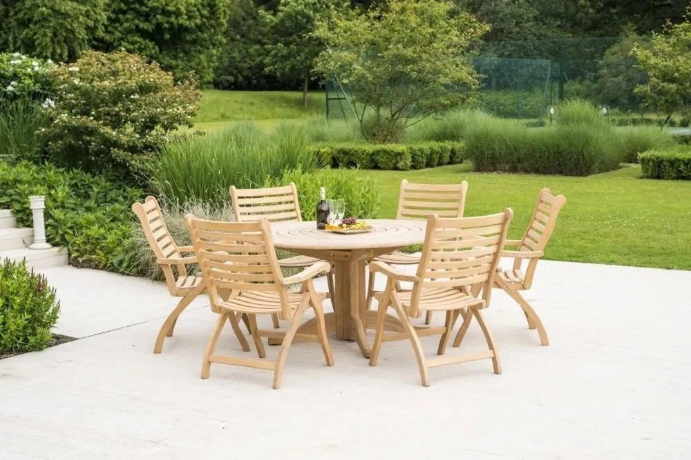 Roble Bengal Round Dining Table - 6 Seater - 145cm - Garden - Pedestal