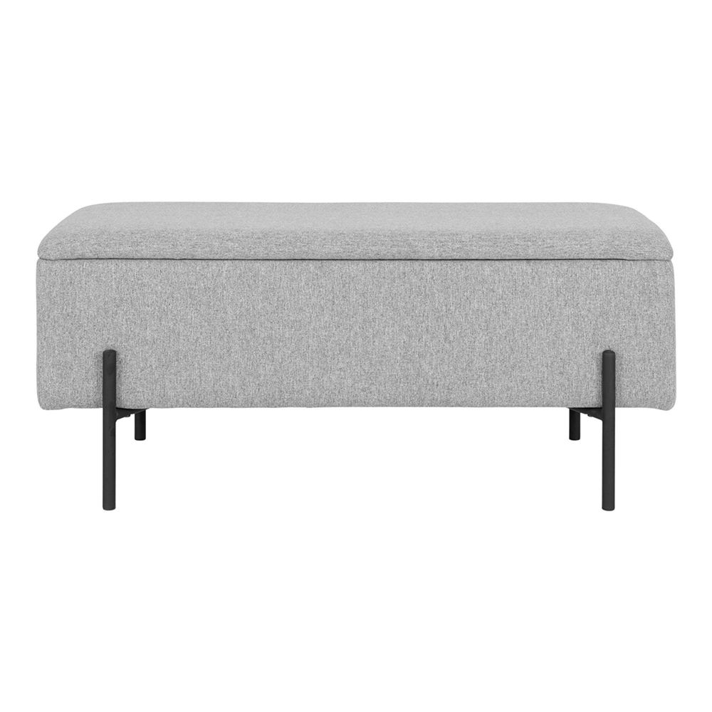 Its smooth light grey polyester fabric adds a soft, welcoming touch, while the foam-padded seat provides dependable seating for everyday routines and special occasions. The lift-top lid reveals a spacious internal compartment designed to store blankets, cushions, shoes, or living room essentials, keeping your space organised without compromising style. Supported by strong black metal legs and a durable engineered wood frame, this piece works easily as a stylish ottoman, accent stool alternative, hallway bench, or end-of-bed seating.