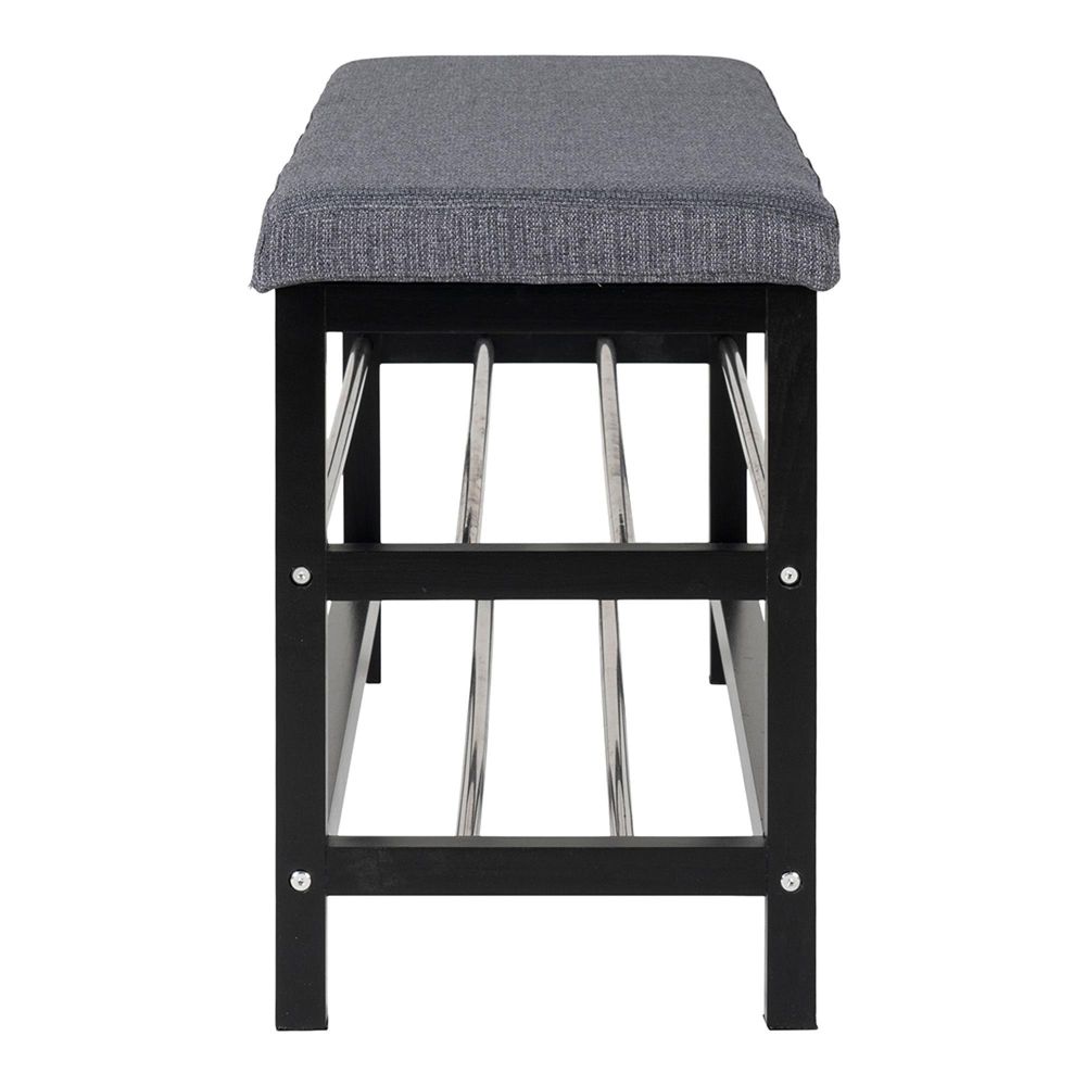 The cushioned seat offers a soft, cosy place to sit, while the two lower metal shelves provide tidy, accessible storage for shoes, baskets, or daily essentials. Whether used as a seating spot near the door, a stylish ottoman substitute, or a versatile accent stool, this piece brings together modern comfort and practical organisation in a streamlined form.