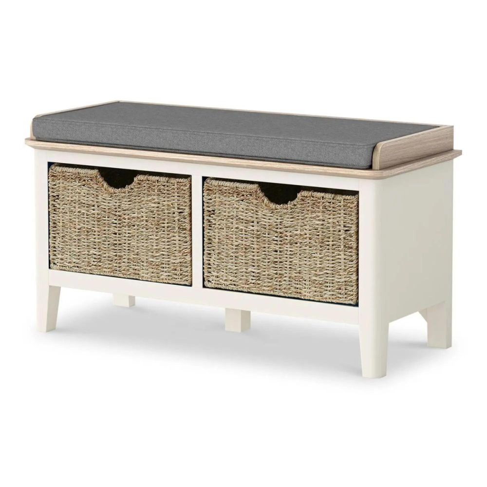 This bench features a cushioned seat for comfortable seating, while the internal storage compartment provides a convenient space for blankets, throws, or everyday essentials. Woven baskets are included to help keep your items organised, and the sleek tapered legs and softly curved edges enhance its refined silhouette.