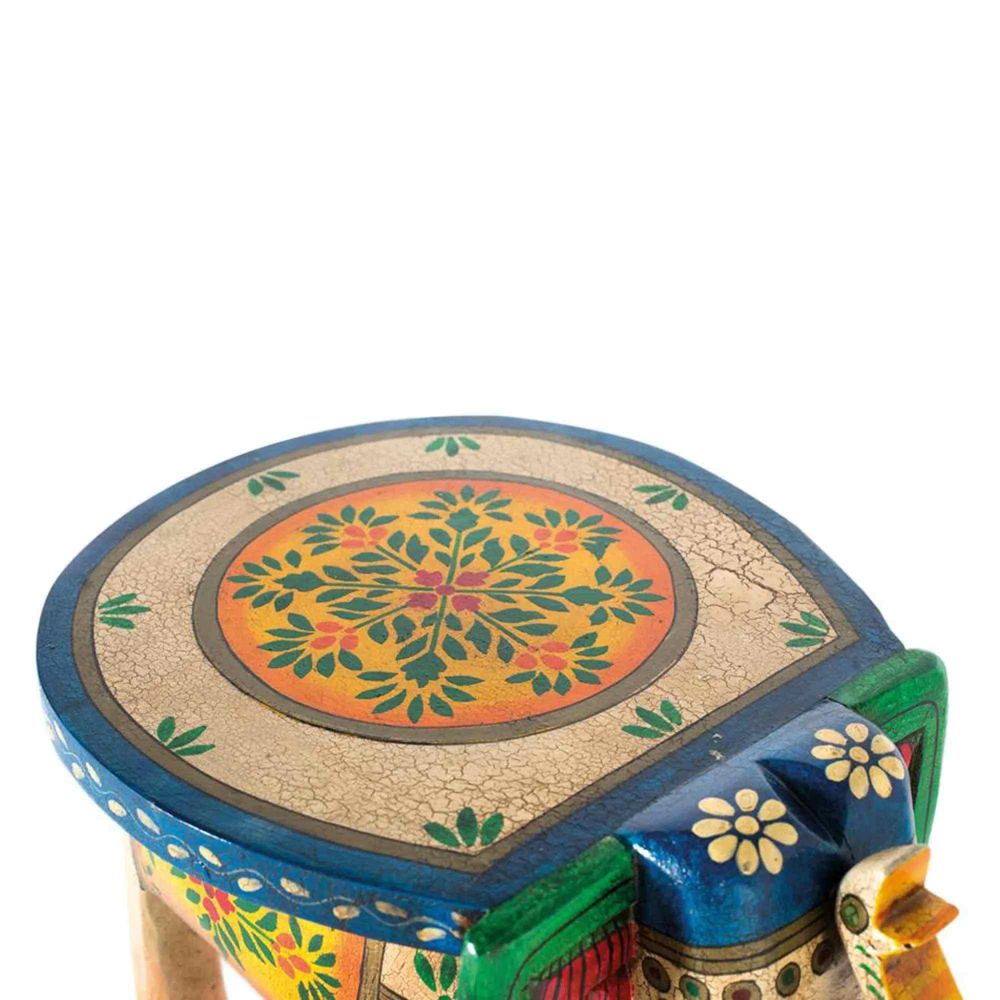 Item Code: 1572 Bench made of mango wood, hand painted. As it is natural wood, it can come with its original knots and grains.