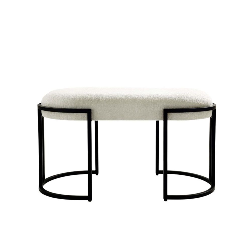 Item Code: FN170-M0-WHBL Elevate your interior with the contemporary elegance of the White Boucle Medium Bench with Black Legs. Soft, textured white boucle fabric adds a luxurious touch while offering durability and easy maintenance. A unique semi-circular frame with clean lines creates a contemporary statement piece. This stylish bench blends effortlessly with modern, minimalist, and industrial-inspired interiors. Whether used as extra seating in your living space, a chic entryway bench, or a statement piece in your bedroom, the White Boucle Medium Bench with Black Legs adds both comfort and elegance to your home.Free Delivery