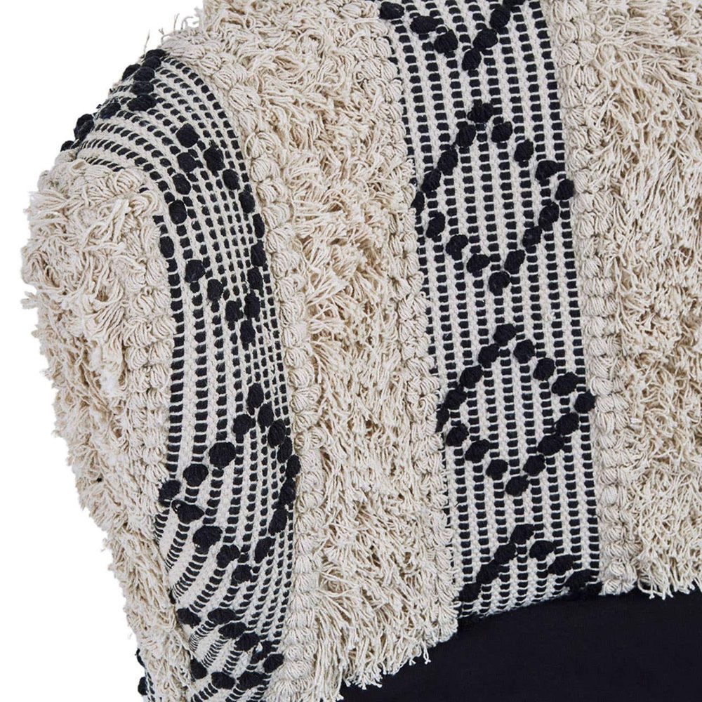 Item Code: 5527793 The Cefena bench features a plush black velvet seat contrasted with a textured woven backrest, offering a bohemian charm to the interior.Inspired by Moroccan design, this bench has a padded black velvet seat. The woven textile backrest features black and white geometrical patterns, creating a striking blend of textures and styles. The bench is supported by slanted mango wood legs in a natural finish, offering style and stability.