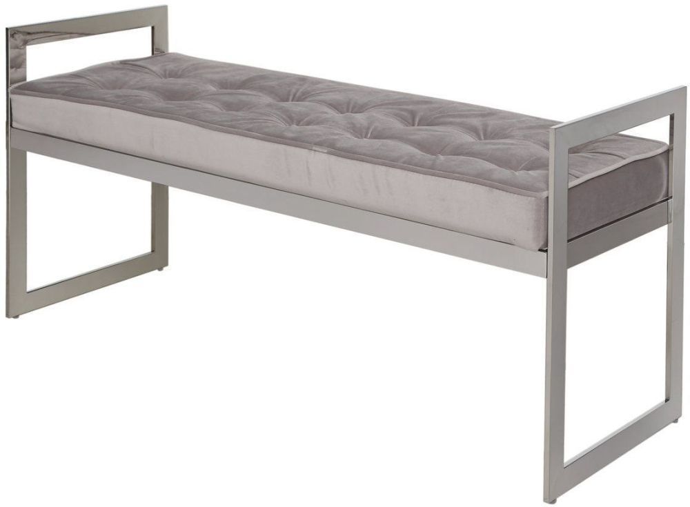Item Code: MF179-00-GY Linosa stainless steel bench featuring a stainless steel base and a deep padded tufted seat.This stylish metal and fabric bench is the perfect choice for the front hall or dining room. The sturdy base is constructed of stainless steel. The well-padded seat features a double row of button tufting with contemporary-style deep seams, this trendy piece will look great in any room in the house. GENERAL CARE INSTRUCTION This product care will guide you on the best way to care for your product to maximize their guaranteed life. Protect from direct sunlight. The location of your product can affect its durability, thus placing it too close to high-temperature appliances can increase the risk of scorching damage or discoloration and placing the item where it can touch external walls can create moisture build-up. Sharp objects and even the claws of your pets can tear, scratch or break the product. * Periodically wipe clean with a soft dry cloth and/or non-abrasive cleaner. * Do not rub or scrub the surface when cleaning. * Take precautions in using vacuums and use low suction as much as possible to maintain product integrity. * Do not strike the material with hard or pointed items. * Do not use abrasive and harsh cleaning products. * Do not sit or stand on products otherwise indicated. * If liquid spills do occur, wipe or blot with dry clean cloth as soon as possible. * Avoid direct and continuous exposure to sunlight. * Care must be taken in using coloured cleaning materials as it may transfer or stain products. * Always follow cleaning product guide/manual on any cleaning product used. * Dragging, pulling, and dropping any product is not recommended. * Do not place items with extreme temperature on the product as it may cause brittleness. DISCLAIMER FABRICS including PVC do not guarantee their material for colour fastness, fading, wearing quality, durability and some fabrics will change with age and exposure to sunlight or adverse reaction to environmental conditions. In addition, variations in the sheen and texture (wrinkling and natural marks) of leather may occur due to different dying and tanning processes and natural phenomena. METAL items are most often hand crafted or hand finished. Colour can vary and slight imperfections are normal for metal crafted by hand. We feel this adds character and authenticity to these items.