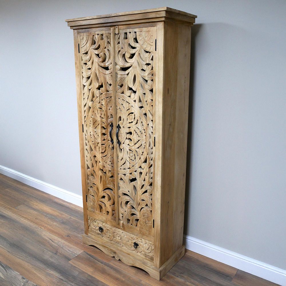 Hall Cabinet - 2 Door - Tall - Carved Mango Wood