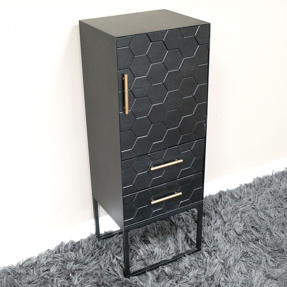 Hall Cabinet - Black - 1 Door - 2 Drawer - Metal & Wood