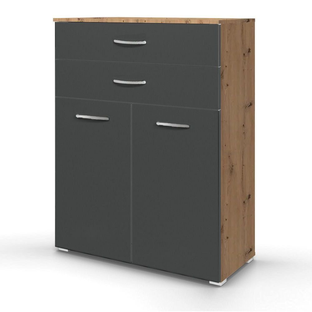Rauch Aditio 2 Door Cupboard with 2 Top Drawer - Artisan Oak and Metallic Dark Grey
