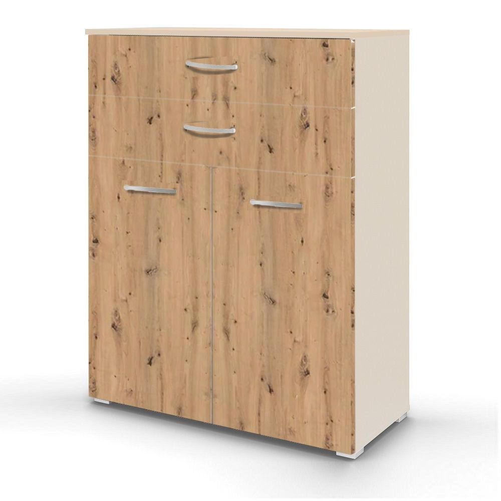 Rauch Aditio 2 Door Cupboard with 2 Top Drawer - Champagne and Artisan Oak