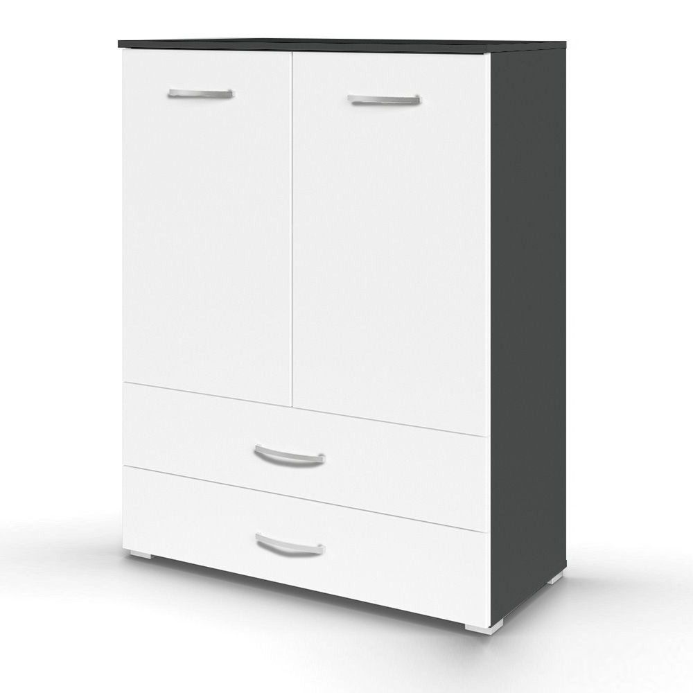 Rauch Aditio 2 Door Cupboard with 2 Bottom Drawer - Metallic Dark Grey and Alpine White