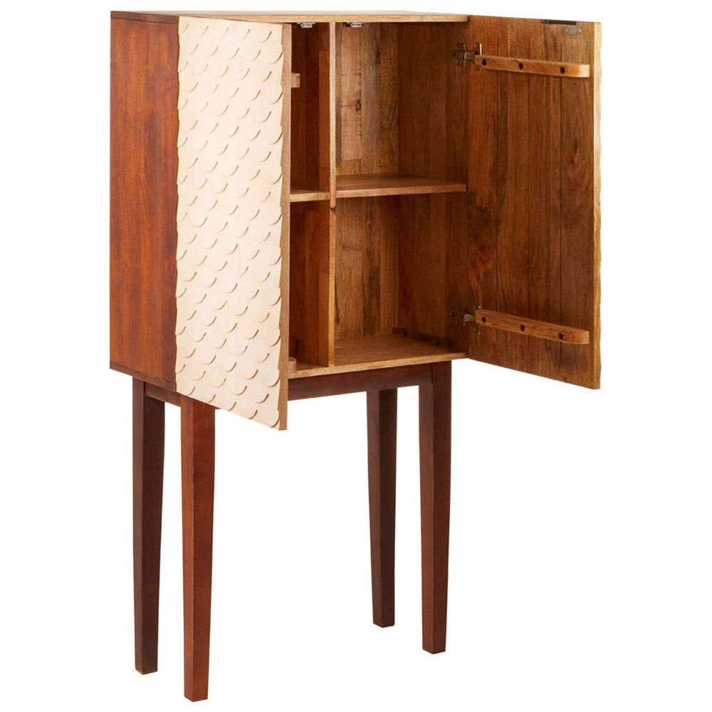 Item Code: 5501605 The Costal 2 door cabinet is made with renewable mango wood featuring art deco pattern balanced by plain legs.Made from tactile mango wood, the Costal cabinet is both stylish and sustainable. Relatively simplistic in design, the cabinet features two rectangular doors that open to reveal four compartments inside. Both doors boast an art deco inspired scale pattern, adding a touch of decoration to their exterior.