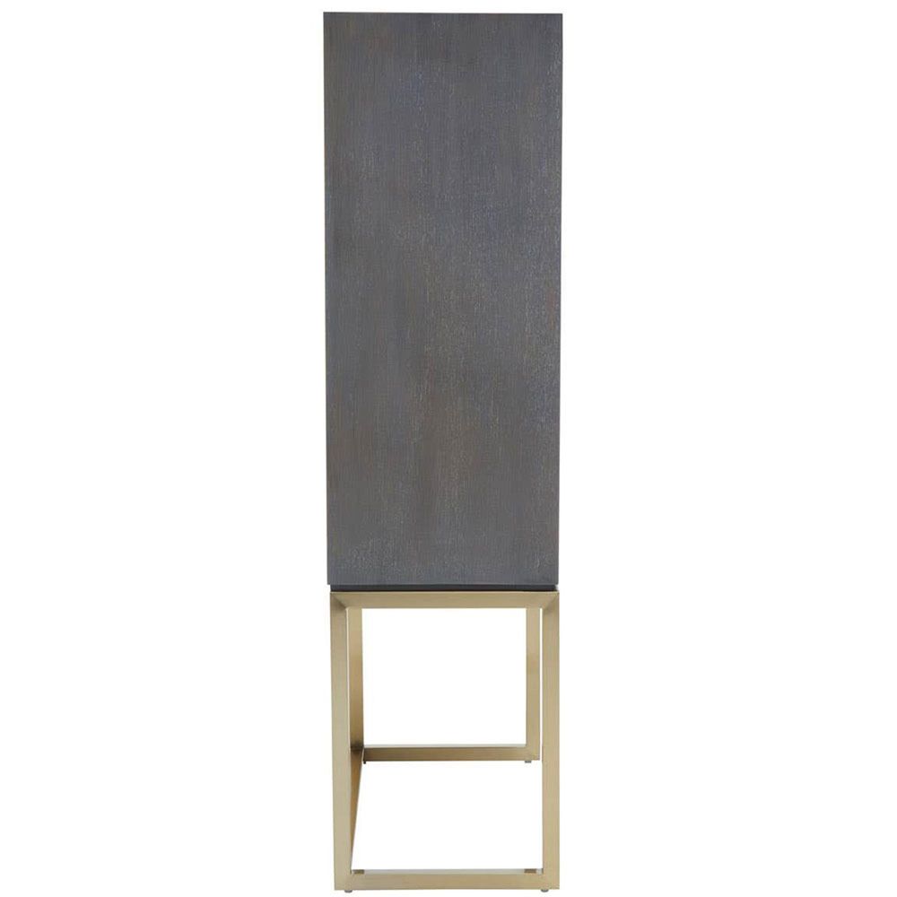 Item Code: 5527813 This 2-door shagreen effect cabinet combines contrasting textures and finishes to create a visually stunning and sophisticated piece.This sleek and modern cabinet is a statement piece with its unique combination of textures and materials. The doors feature a grey shagreen effect, adding a touch of luxury and tactile interest. A minimalist gold metal base elevates the cabinet, adding a touch of warmth and sophistication. This stylish cabinet provides ample concealed storage behind its two shagreen-effect doors.