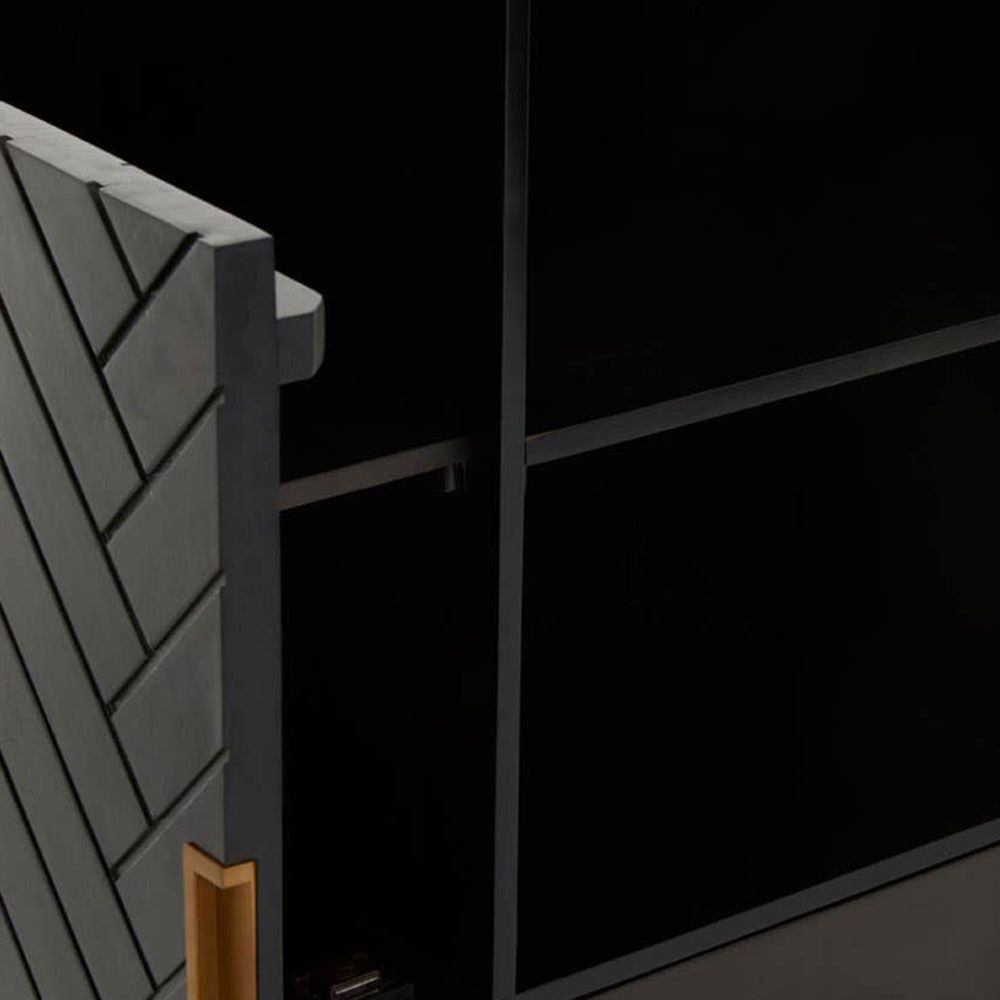 Item Code: 5529165 The Kochi one door, four drawer, shelved mango wood cabinet is adorned by gold iron handles and legs, creating an elevated bohemian aesthetic.The Kochi cabinet has a bohemian aesthetic. Panels of mango wood form a herringbone pattern across the front of the cabinet, which is complemented by gold iron handles and legs. Ample storage space is available thanks to the shelved storage space and drawers.