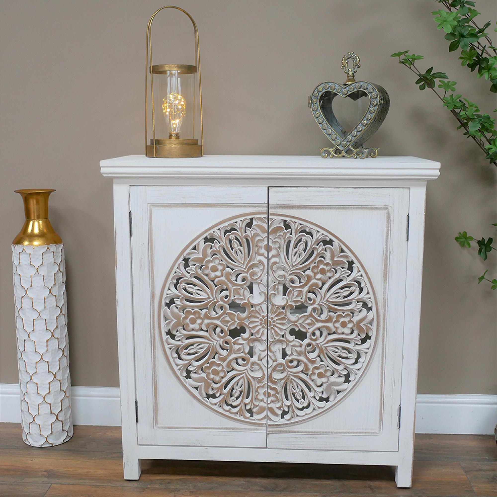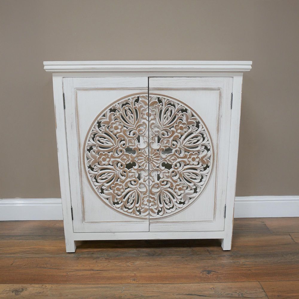 Cabinet - 2 Door - Small - Whitewashed Carved Mango Wood