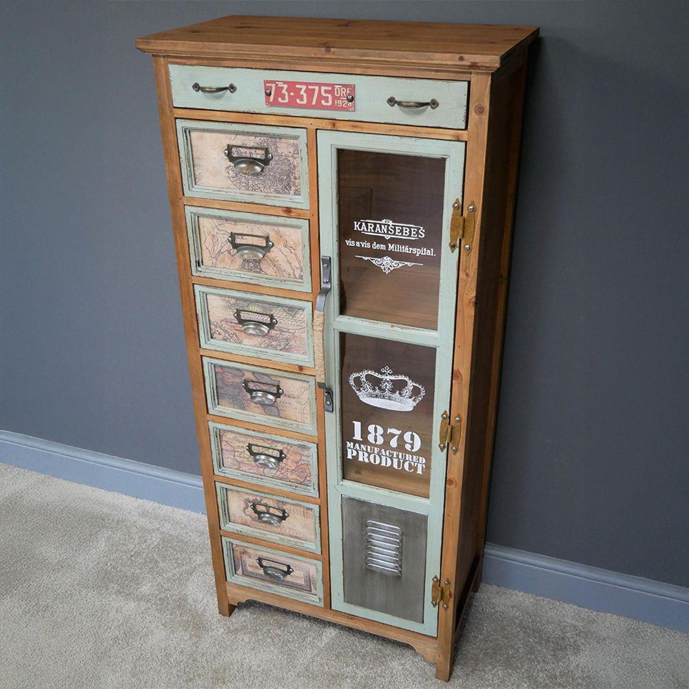 Apothecary Cabinet - 1 Door - Multi Drawer - Fir Wood - Industrial Style