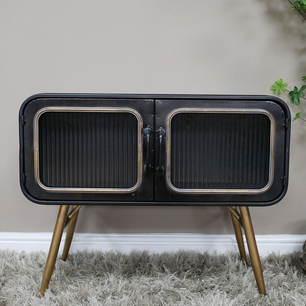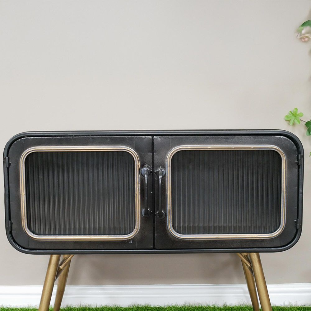 Cabinet - Black Metal - 2 Door - Retro - Small - with Gold Legs
