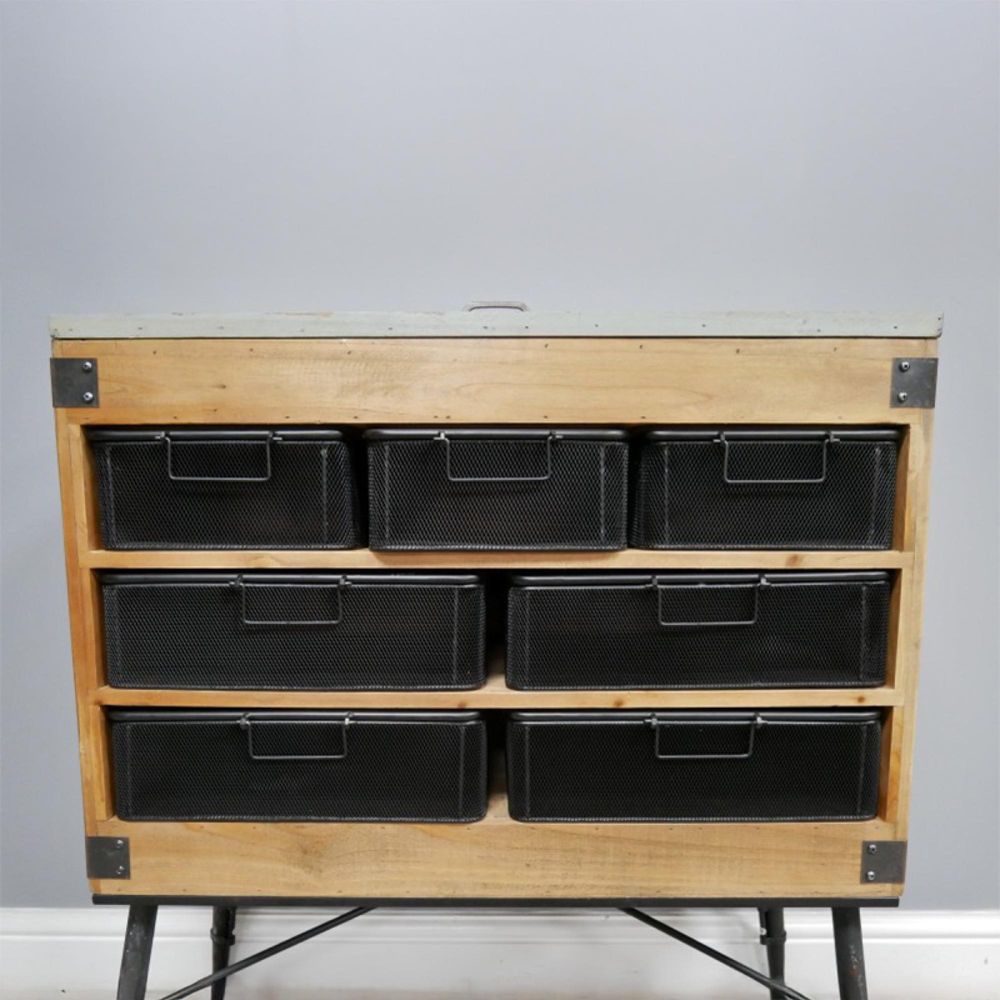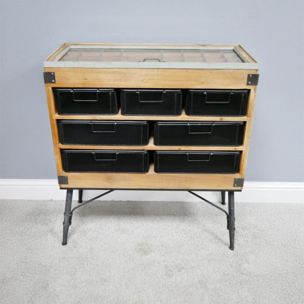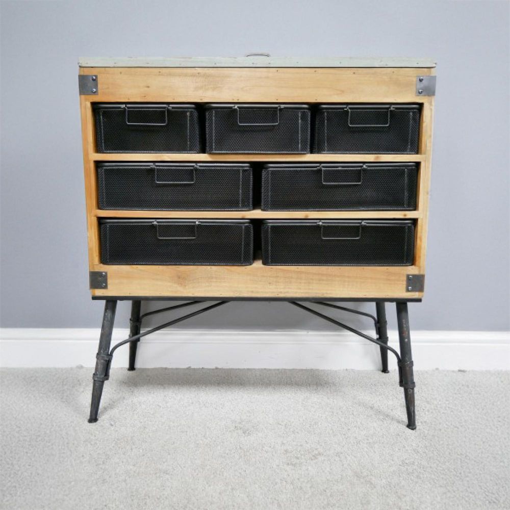 Cabinet - Fir Wood and Metal - Multi Drawer - Retro