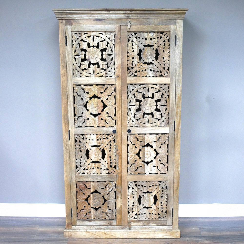 Cabinet - 2 Door - Large - Carved Mango Wood