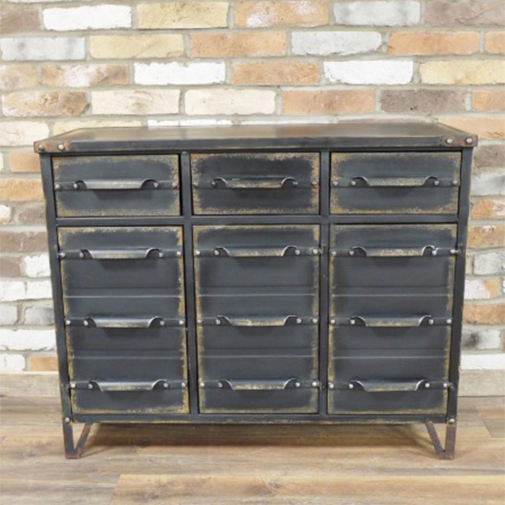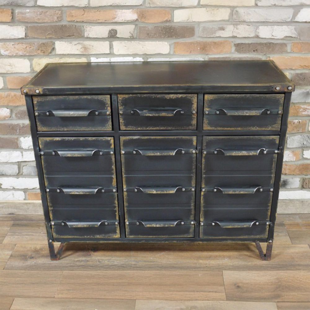 Cabinet - 3 Door - 3 Drawer - Black Metal - Industrial