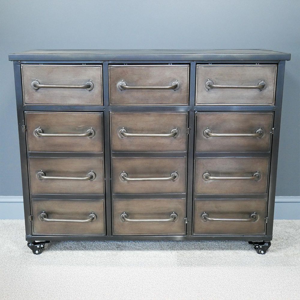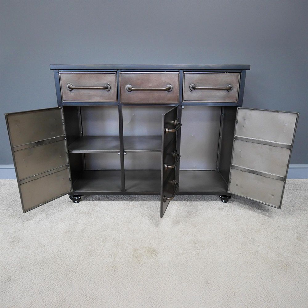 Cabinet - 3 Door - 3 Drawer - Brown Metal - Industrial