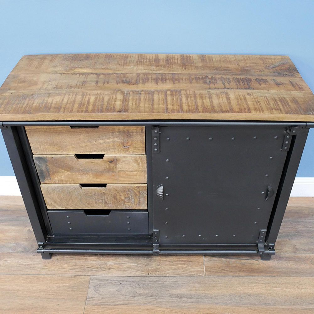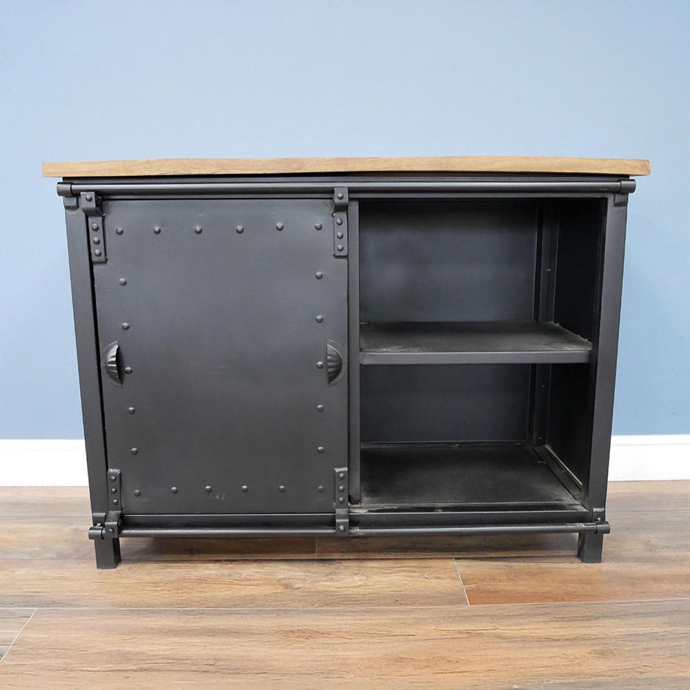 Sliding Door Cabinet - Black Metal and Mango Wood