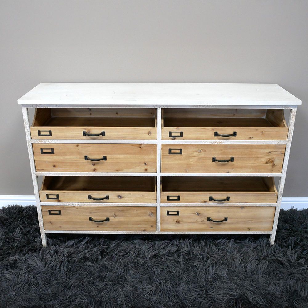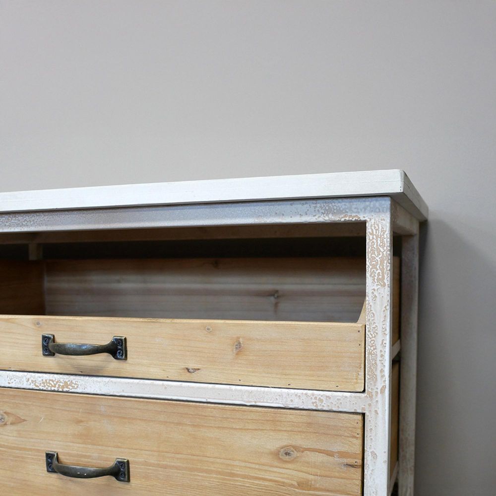 Console Table - Wood and White Metal - Large - Storage