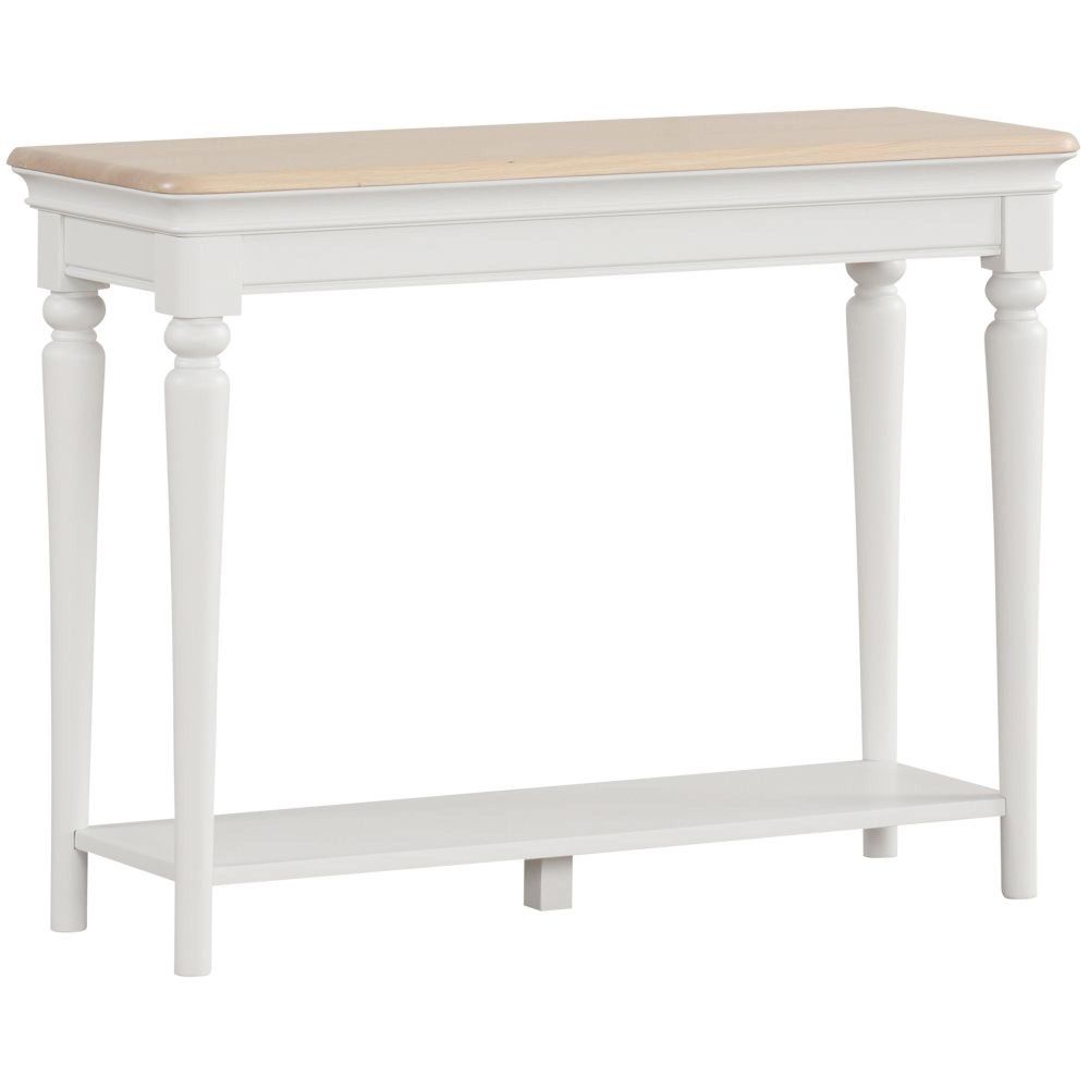 Elevate your hallway or living room with this elegant painted console table. Designed with beautifully turned legs, a durable oak top, and a spacious lower shelf, it offers both beauty and function. Ideal for displaying decor or storing essentials, this piece adds a welcoming, modern country touch to any space.