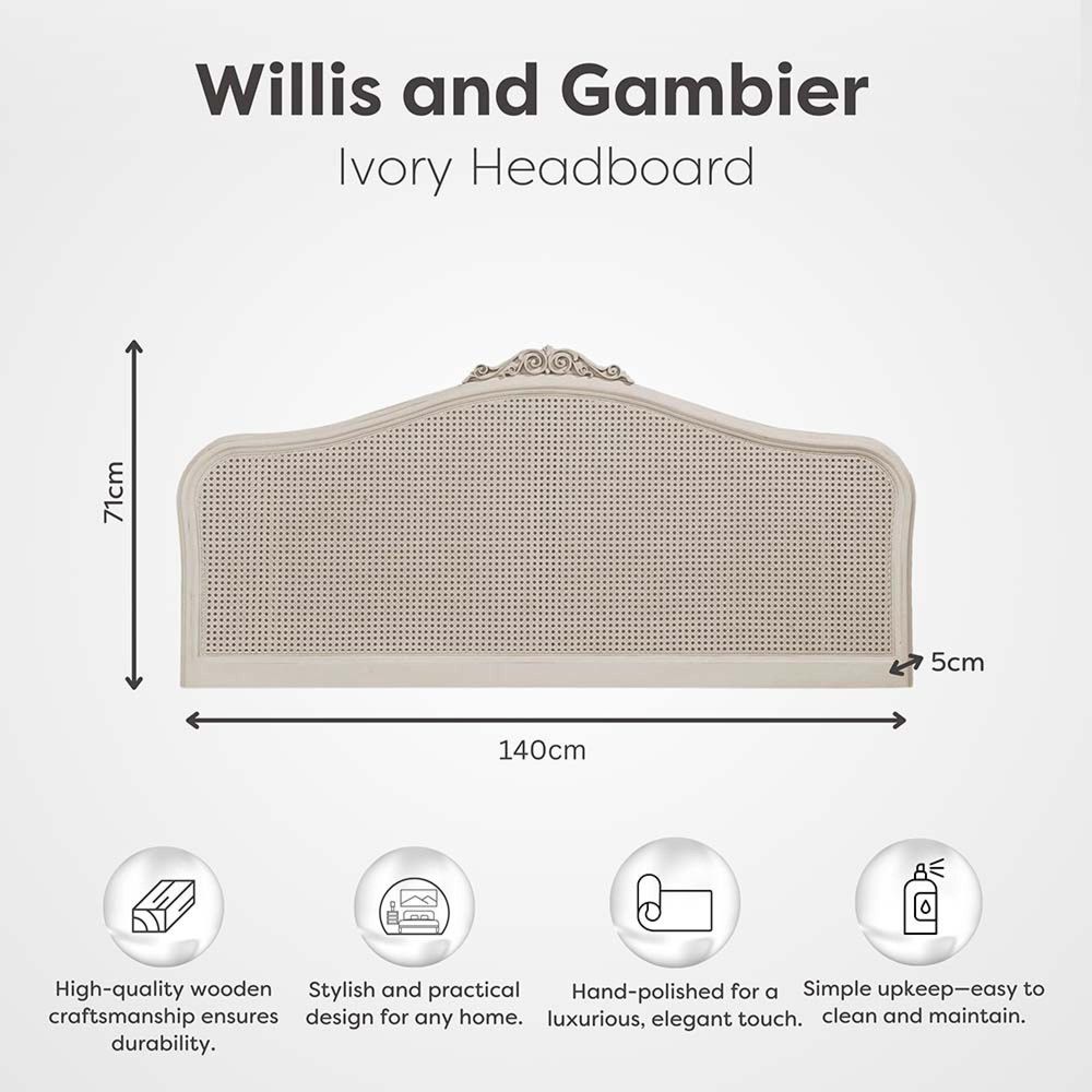 Enhance your bedroom with the timeless elegance and expert craftsmanship of the Willis and Gambier Ivory Headboard—a perfect blend of style, quality, and enduring beauty.