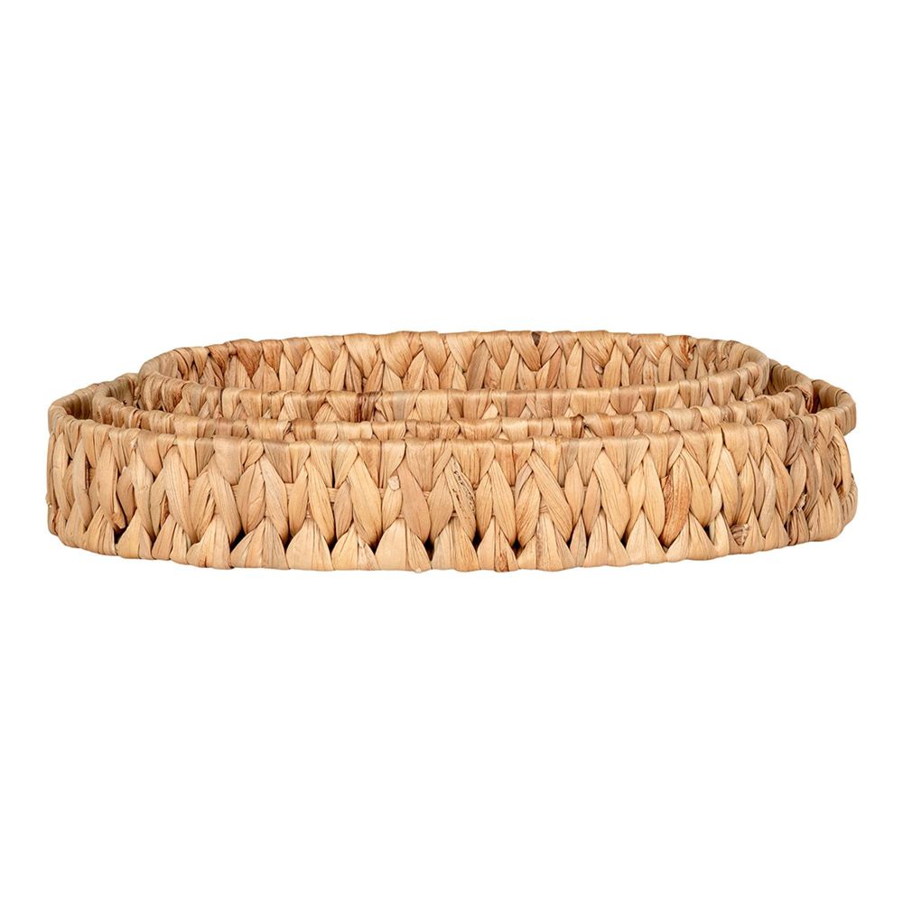 Bring the charm of natural texture and practical styling to your home with this set of three round serving/decor trays—designed in warm water?hyacinth fibre with a beautiful natural finish. The varying sizes provide flexible use, whether for serving drinks, organising accessories, or creating a decorative display.