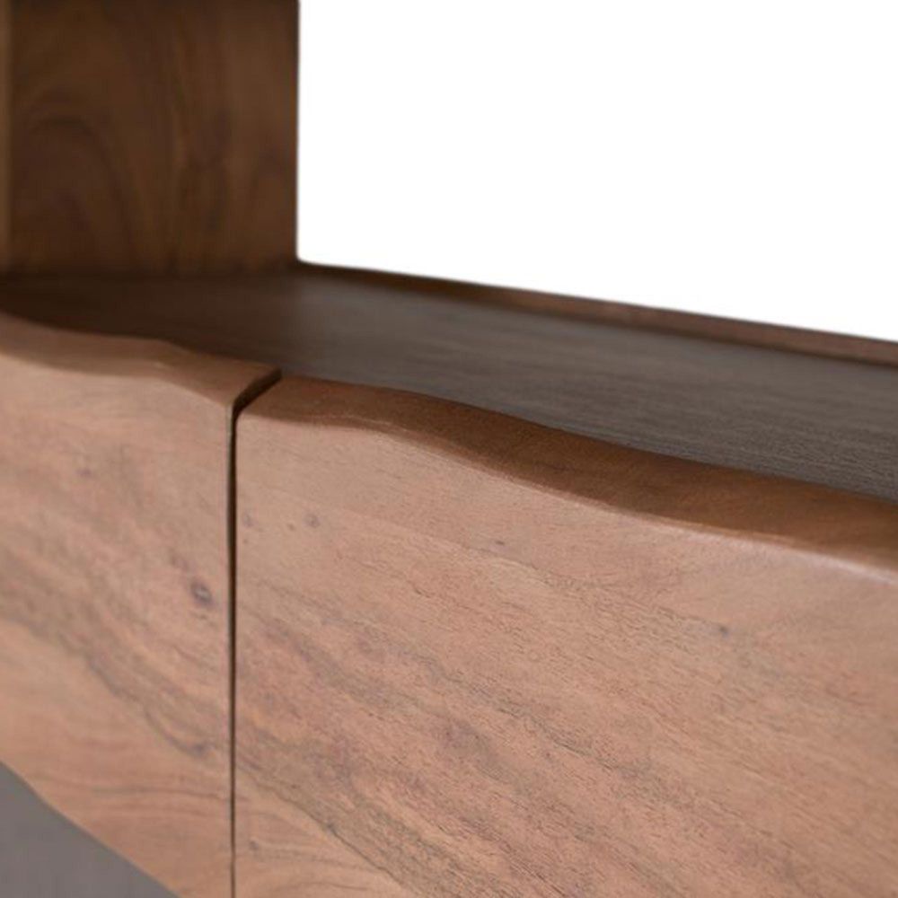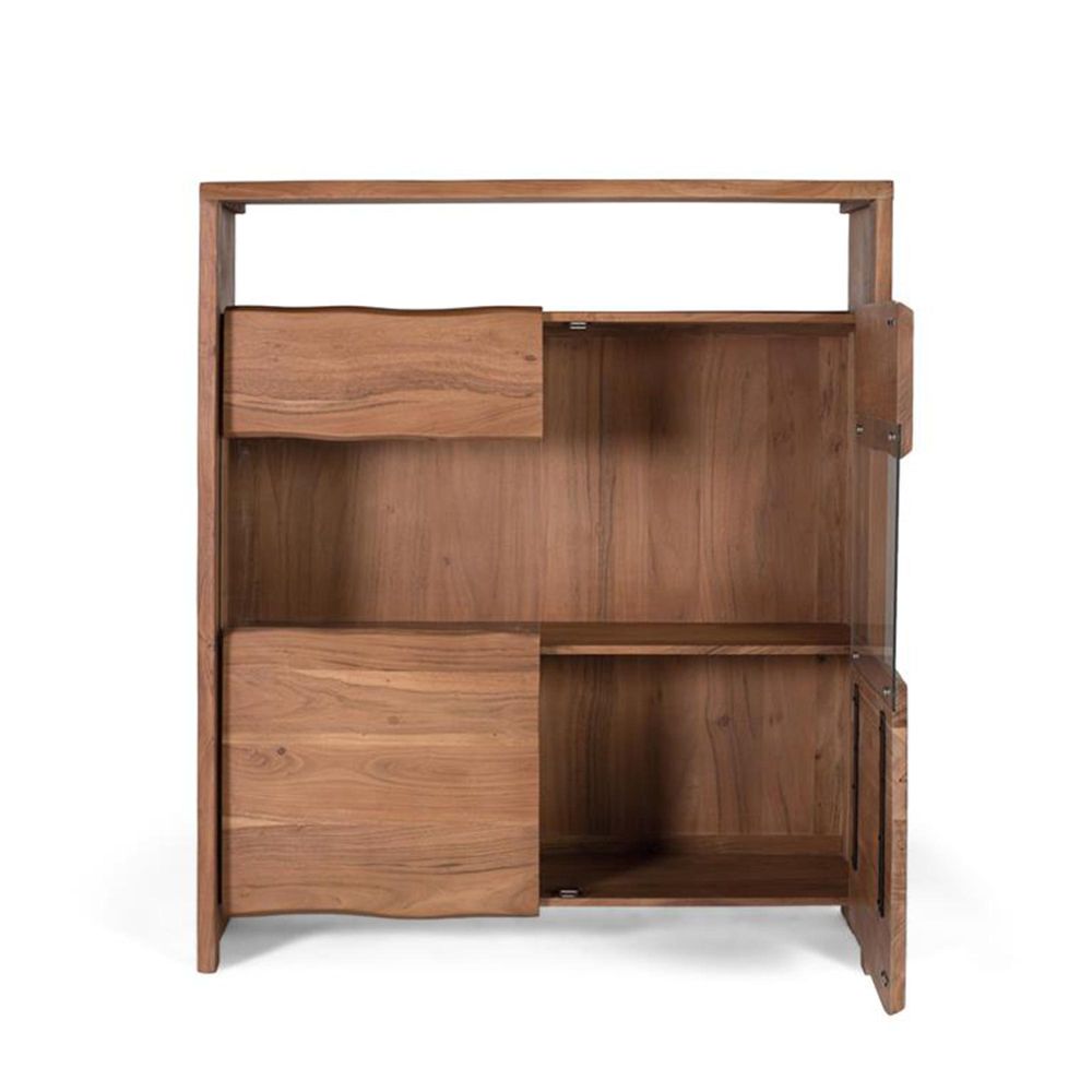 Item Code: 2233 This Sideboard Is Made Of Solid Acacia Wood, With A Modern And Natural Design. It Features Several Compartments: Two Hinged Doors With A Wavy Front On The Left Side And Two Glass Doors On The Right Side, One Of Which Has An Interior Shelf. In The Center, An Open Space Allows For The Display Of Decorative Objects. Its Finish Highlights The Warm, Distinctive Grain Of The Wood, Combining Functionality And Style In A Versatile Piece For The Living Room, Dining Room, Or Office.