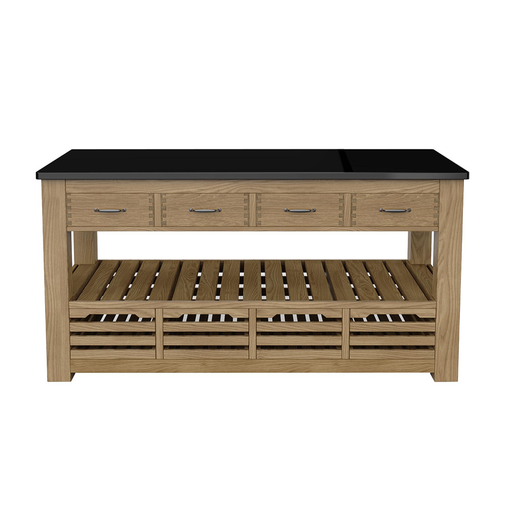 Oak 8 Drawer Kitchen Island with Black Granite Top