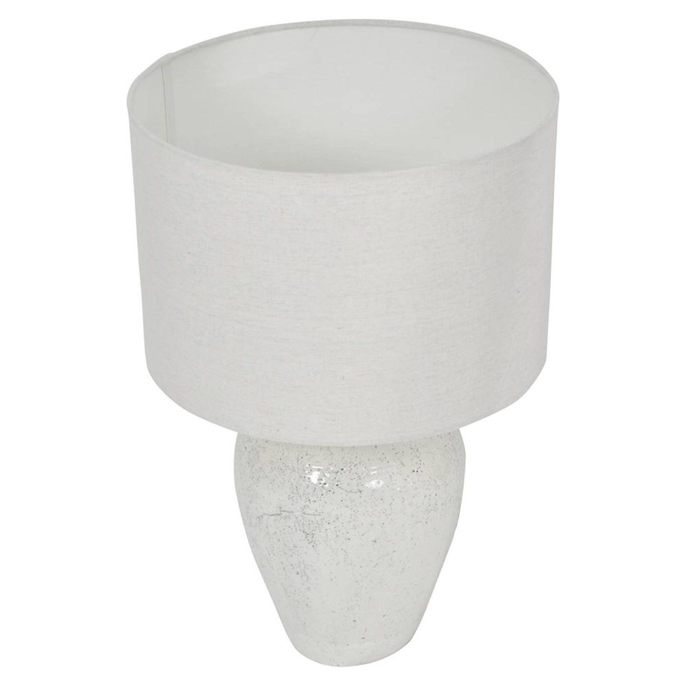Item Code: 704141 With its soft yet striking base design, this table lamp will draw the eye. Featuring a speckled terracotta pattern in black and white, this lamp also comes with a subtle neutral shade. Requiring a single screw cap 60W E27 bulb, the lamp is operated via a simple switch on its mains cable.Free Delivery
